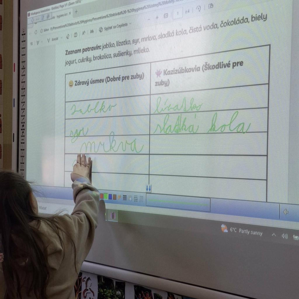 Prostredníctvom zážitkových aktivít mali žiaci možnosť získať nové vedomosti a praktické zručnosti v oblasti hygieny, zdravého životného štýlu, sociálnych zručností a prevencie rizikového správania. Jednou z aktivít bola zážitková hodina s názvom „Moje telo – môj hrad“, počas ktorej si žiaci mohli prakticky overiť správnosť umývania rúk. Pomocou UV lampy a fluorescenčného gélu mohli vidieť miesta na rukách, ktoré pri bežnom umývaní často zostávajú nedostatočne očistené. Táto aktivita mala veľký ohlas a pomohla deťom lepšie pochopiť význam hygieny rúk pri prevencii ochorení. Na túto aktivitu nadviazal program, ktorý bol zameraný na starostlivosť o ústnu hygienu. Žiaci sa oboznámili so stavbou zuba, s príčinami vzniku zubného kazu a prostredníctvom modelu chrupu si nacvičili správnu techniku čistenia zubov. Dôležitou súčasťou projektu boli aj aktivity zamerané na rozvoj sociálnych a emocionálnych zručností. Program „Slová namiesto pästí“ pomohol žiakom naučiť sa jednoduché relaxačné techniky, ktoré im pomáhajú zvládať stres a napätie. Žiaci sa učili pomenovať aj vlastné pocity pomocou terapeutických kariet. Pre starších žiakov bola pripravená preventívna aktivita „Alkohol a jeho vplyv na človeka“, počas ktorej sa žiaci formou diskusie, prezentácie a praktických úloh oboznámili s rizikami konzumácie alkoholu. Najväčší záujem vzbudila simulácia pomocou špeciálnych okuliarov, ktoré imitujú stav opitosti a umožňujú žiakom uvedomiť si, ako alkohol ovplyvňuje koordináciu pohybu a orientáciu. V rámci projektu sa zároveň podarilo vytvoriť v škole aj novú zónu bezpečia – priestor určený na oddych, relaxáciu a reguláciu emócií žiakov. Miestnosť bola upravená a vybavená relaxačnými a senzorickými pomôckami, sedacími vakmi, lampami, balančnými podložkami a výtvarným materiálom. Žiaci tu môžu oddychovať, venovať sa tvorivým aktivitám alebo sa upokojiť v príjemnom a bezpečnom prostredí.