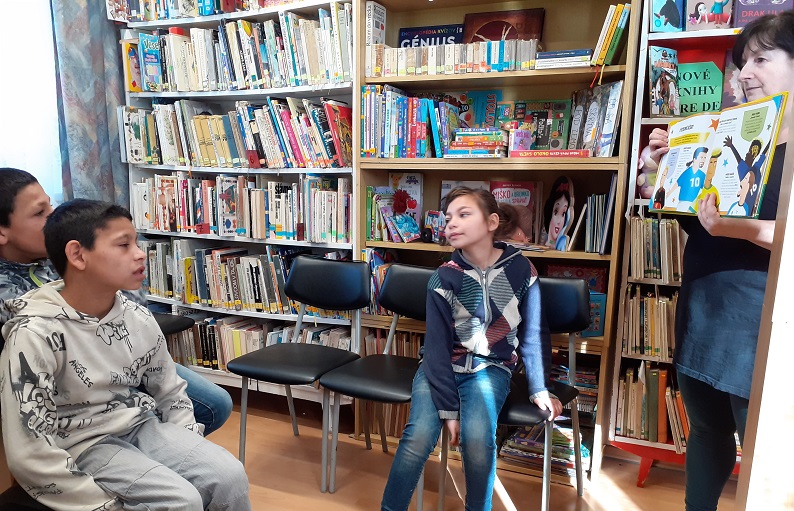 Poznámka: vo fotogalérii sú žiaci špeciálnej triedy, výstavka knižných noviniek pre túto vekovú kategóriu, členovia miestnej občianskej a preventívnej služy v Gemerskej Polome.