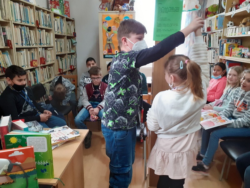 Žiaci tunajšej základnej školy tiež navštívili obecnú knižnicu. Temer všetky ročníky sa vystriedali. Ako ináč i tu nové knihy boli veľkým lákadlom. Zvlášť náučná literatúra mládežnícka je pre ne nesmierne zaujímavá. Nie čudo, veď fantastické vynálezy Leonarda da Vinciho s originálnymi kresbami a rozkladacími stranami, či spoznanie 20 výnimočných chlapcov, objaviteľov ktorí zmenili svet, alebo nové poznatky o Slovenku, ako i čítať o staroveku zaujmú aj dospelého čitateľa. Nedalo zistiť, ako by dokázali v krátkom čase pripraviť divadelné predstavenie pre svojich spolužiakov za pomoci maňušiek podľa rozprávkových kníh. Po ruke mali dve takého knihy (leporelá), niekoľko rekvizít a svoj um. Predstavenia sa páčili, divadelníci boli spokojní a my ostatní sme boli aj zaskočení, ako dnešné deti dokážu improvizovať a nenechajú nič na náhode – možno by bolo občas aj vhodné si z nich vziať príklad. Príjemným spestrením bolo zastavenie sa pri novej knihe Peter Nagy pre deti s ilustráciami Zuzany Smatanovej a so známymi pesničkami, kde sme si aj zaspievali, ba čo viac aj zatancovali. Bolo i mnoho smiechu, ale i vážnych zamyslení sa nad knihou a o jej význame pre ne.